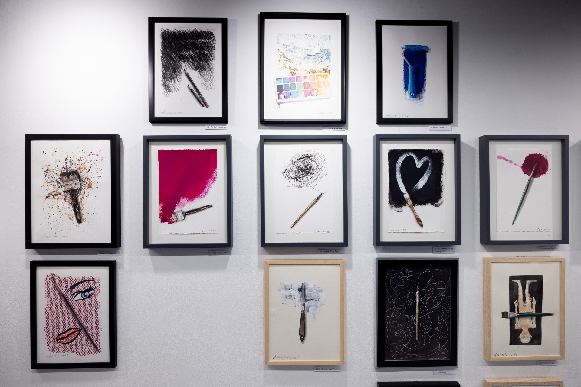 «Они создавали работы теми же инструментами, что используют художники сейчас. Поэтому в этой серии соединены инструменты и ироничные версии работ знаменитых авторов. Я представил этих героев за работой, с кистями, карандашами, делающими эскизы и наброски. Таким образом звёздные художники оказываются среди нас, в рабочей атмосфере мастерской. Через эти рисунки видны живые люди, не чуждые сомнений, раздумий и юмора», — делится Семён Агроскин.