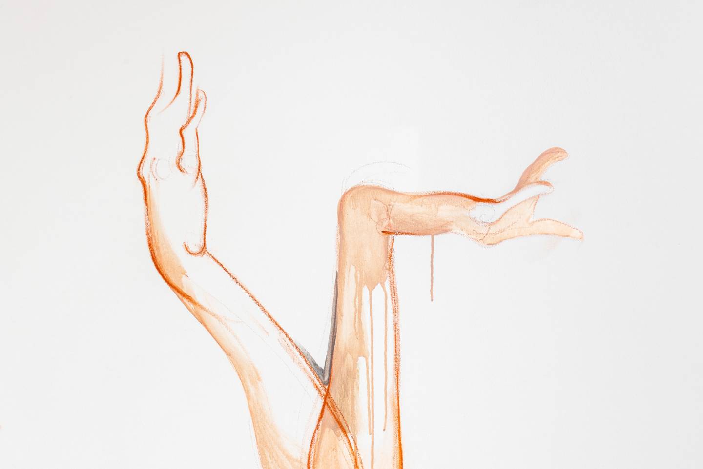 Её работы всегда ярко раскрываются в совокупности, перетекая одна в другую. Новым шагом в творчестве Гореловой стала выставка в «ГРАУНД Солянка» Hic sunt dracones, где причудливые образы вырывались на стены, заполняя пространство. Однако фресковая монументальность отчасти сдерживает живые, текучие телесные фигуры. В новом проекте художница идёт дальше, чтобы сделать зыбкими границы внутри целого галерейного пространства.