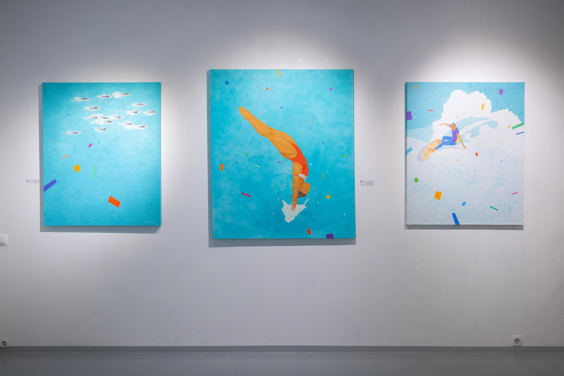 Цвет моря и водная стихия не дают художнику Кириллу Кипяткову покоя, он постоянно обращается к ним в своем творчестве, и это задает вектор нового проекта. Вопреки осени, жизненным трудностям и изменчивости настроения, он визуальным языком рассказывает о фундаментальных вещах — о значимости нашего физического присутствия, реализации в движении, пластике тела и эффективном взаимодействии с природой.