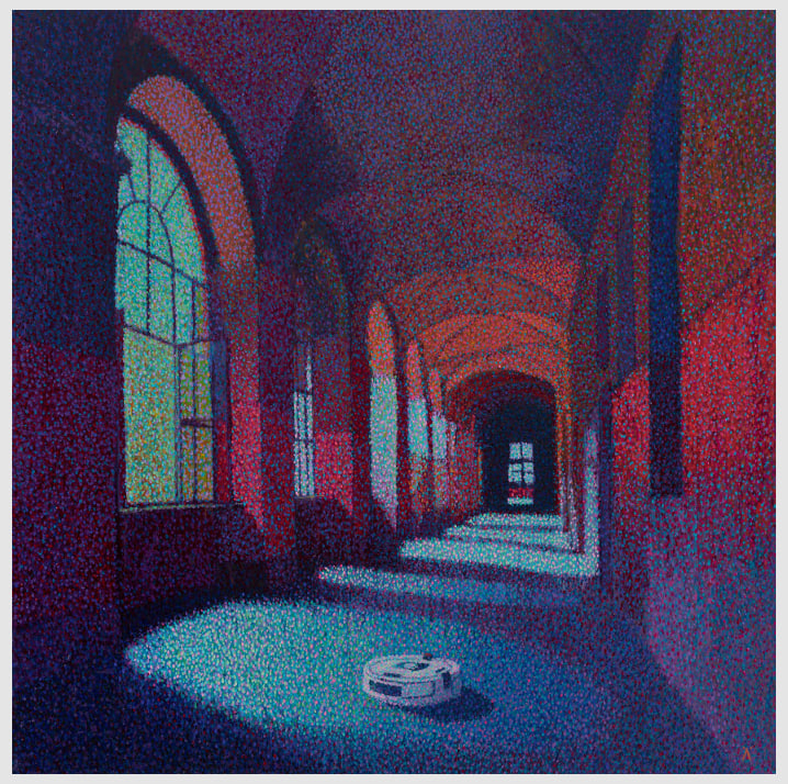 В своей художественной практике Непетрович обращается к методам пуантилизма, создавая выразительные работы в узнаваемой стилистике. Холсты, представленные на выставке, созданы в 2025 году и продолжают одну из стилистических линий автора. Интерьеры, довлеющие над одинокими персонажами — основной сюжетный ход автора. Детские игрушки или роботы-пылесосы выглядят потерянными на фоне пустых комнат, словно покинутых их обитателями. Экзистенциальное напряжение одиночества в пустыне на полях человечества — ключевая эмоция работ.