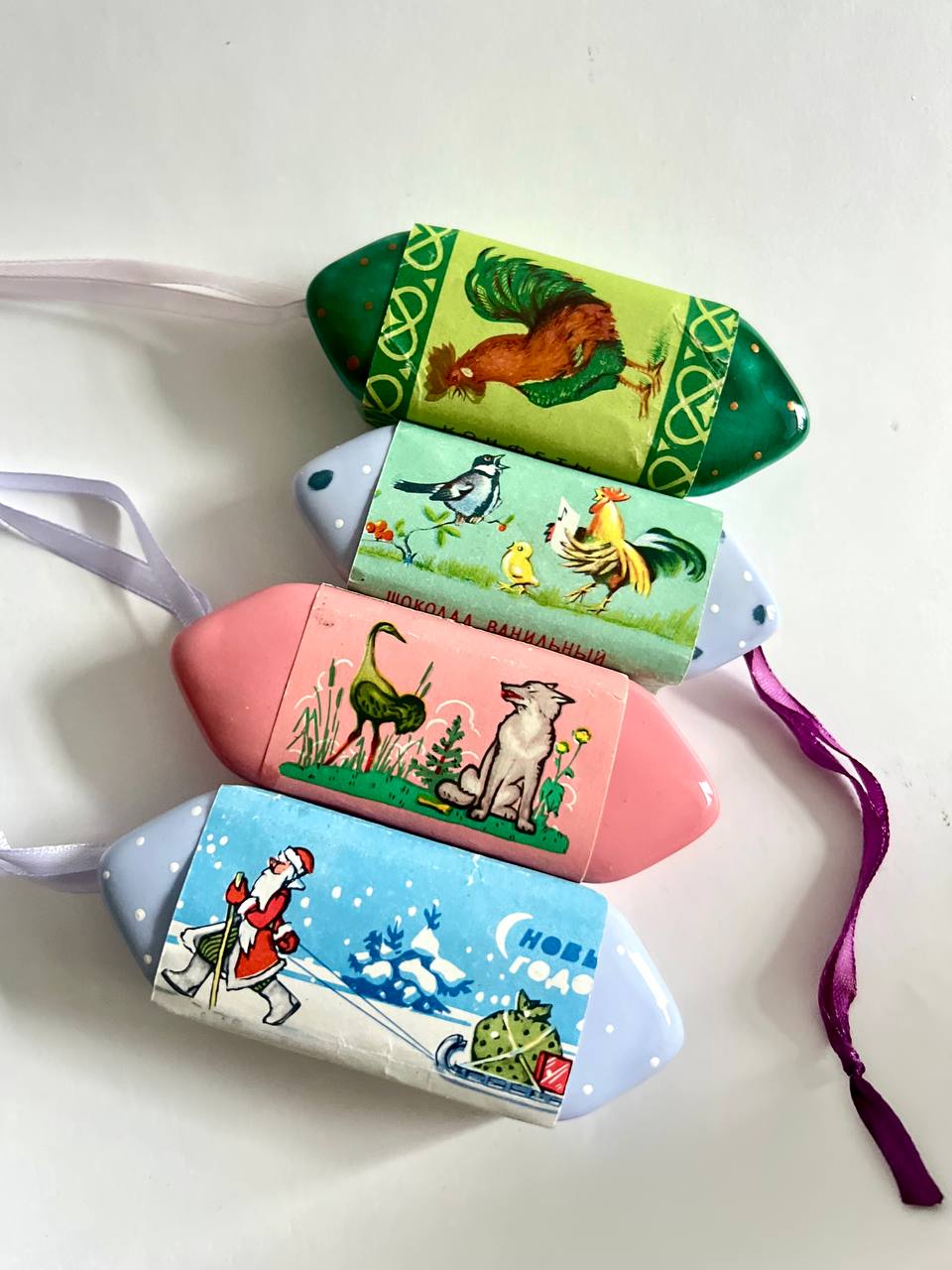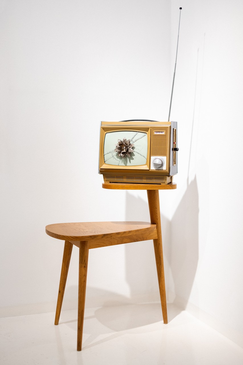 В самом начале нас встречает стол: посуда, свечи и текстиль создают ощущение уюта и тихого семейного вечера. Прямо напротив — ретро-телевизор с видео-проектом Юрия Чернышева, в котором художник рефлексирует на тему рекламы и создает свою собственную интерпретацию этого явления,ставшего важной частью той самой волшебной атмосферы ожидания Нового года. Эта часть экспозиции посвящена ностальгии по семейному празднованию Нового года, когда все близкие собираются перед телевизором в ожидании боя курантов и обмениваясь подарками. Атмосфера уюта и семейного тепла, где хочется остановиться и вспомнить, что праздник начинается с настроения.