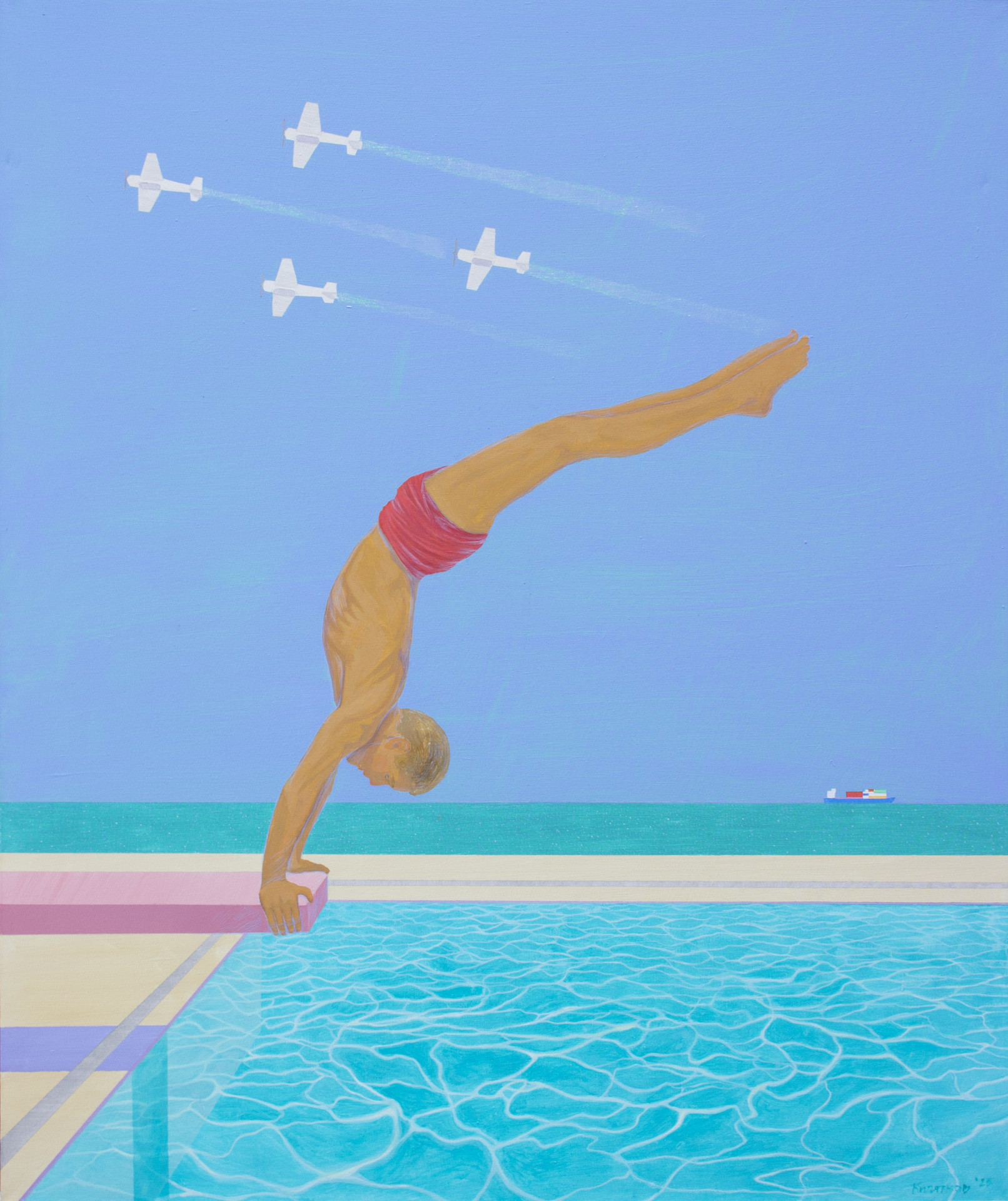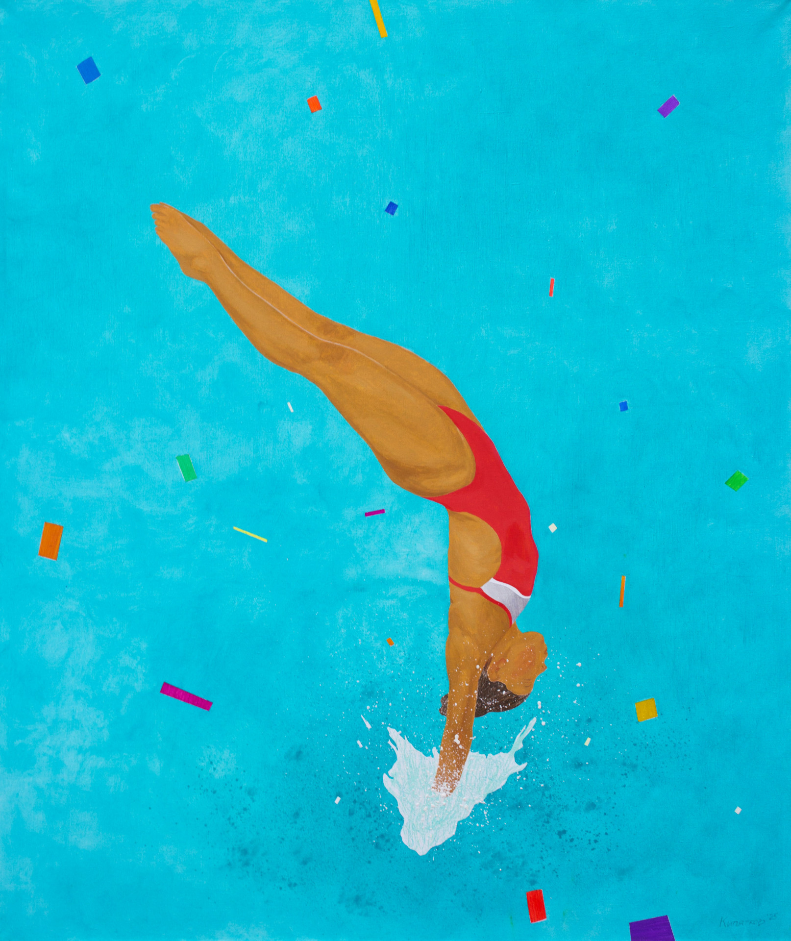 Цвет моря и водная стихия не дают художнику Кириллу Кипяткову покоя, он постоянно обращается к ним в своем творчестве, и это задает вектор нового проекта. Вопреки осени, жизненным трудностям и изменчивости настроения, он визуальным языком рассказывает о фундаментальных вещах — о значимости нашего физического присутствия, реализации в движении, пластике тела и эффективном взаимодействии с природой.