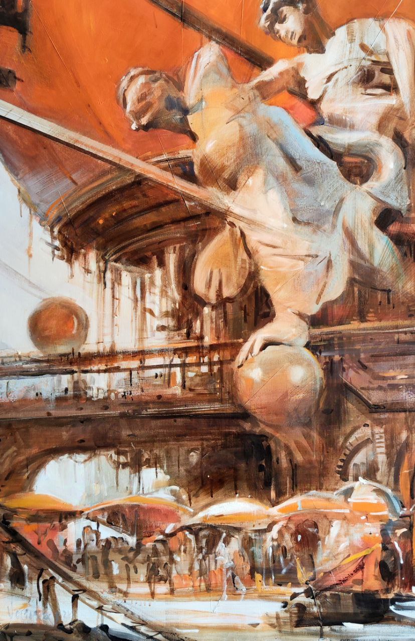 Визуальный язык выставки строится на напряжении между величием и руиной, памятью и тщеславием, жизнью и её следом. Одни работы помещают скульптурные образы в пустынные пространства, почти лишённые признаков жизни; другие, напротив, предлагают сценарии, в которых человеческое присутствие всё ещё возможно — но уже в изменённой, хрупкой или неочевидной форме. Так серия разворачивается как размышление о том, что способно пережить время: материя, образ, идея или культурная воля к сохранению.
