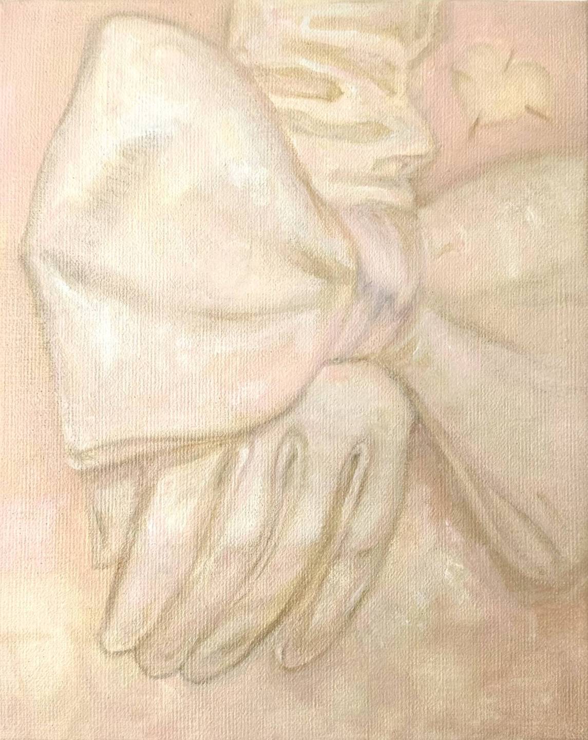 Пространство выставки устроено как комната девочки-подростка — место, где мягкость ещё не вытеснена жестокостью внешнего мира, а личные переживания ощущаются особенно остро. Кровать с балдахином, подушки, розовые стены создают атмосферу одновременно защищённую и уязвимую. На выставке будут представлены живописные произведения из разных серий, объединённые общей интонацией: вниманием к телесности, эмоциональной памяти и процессу наделения повседневных предметов магическими свойствами.