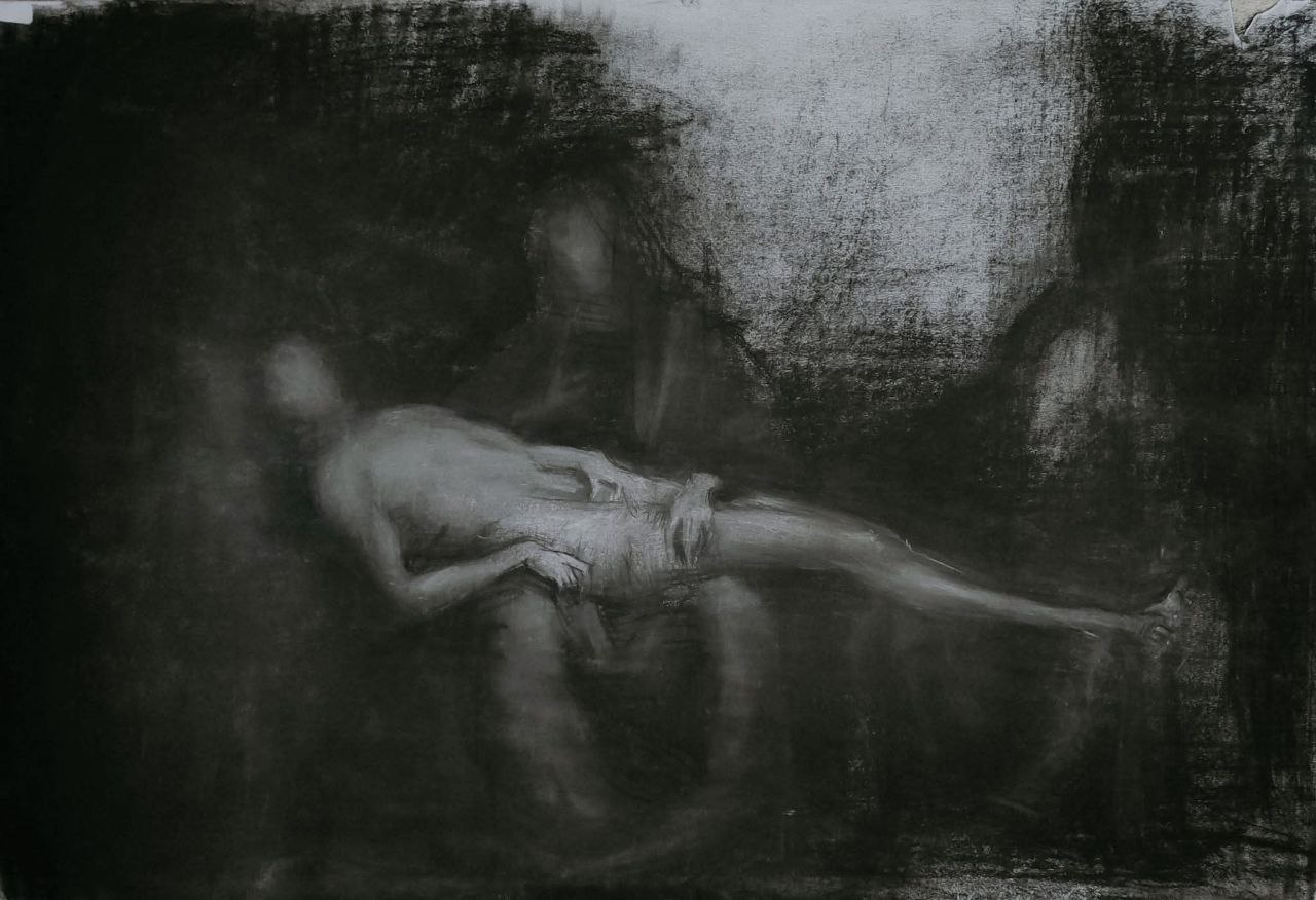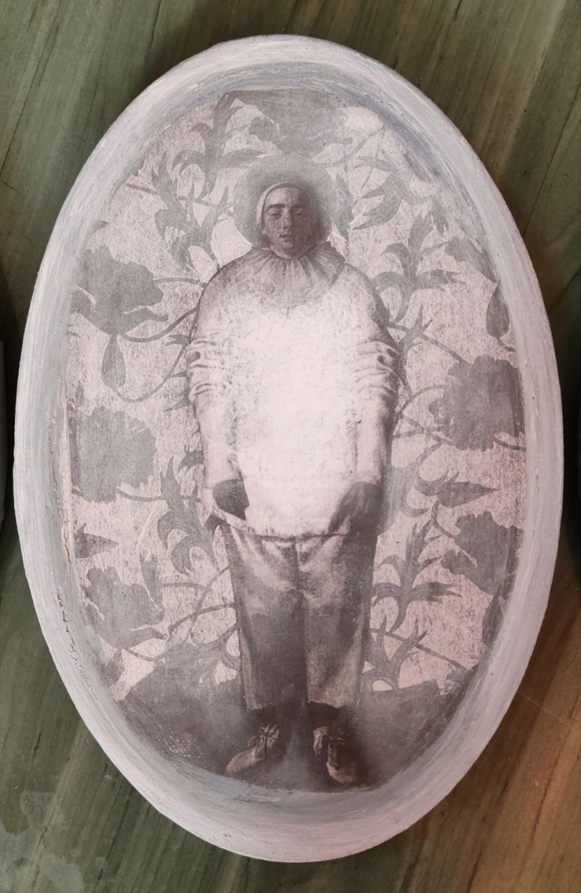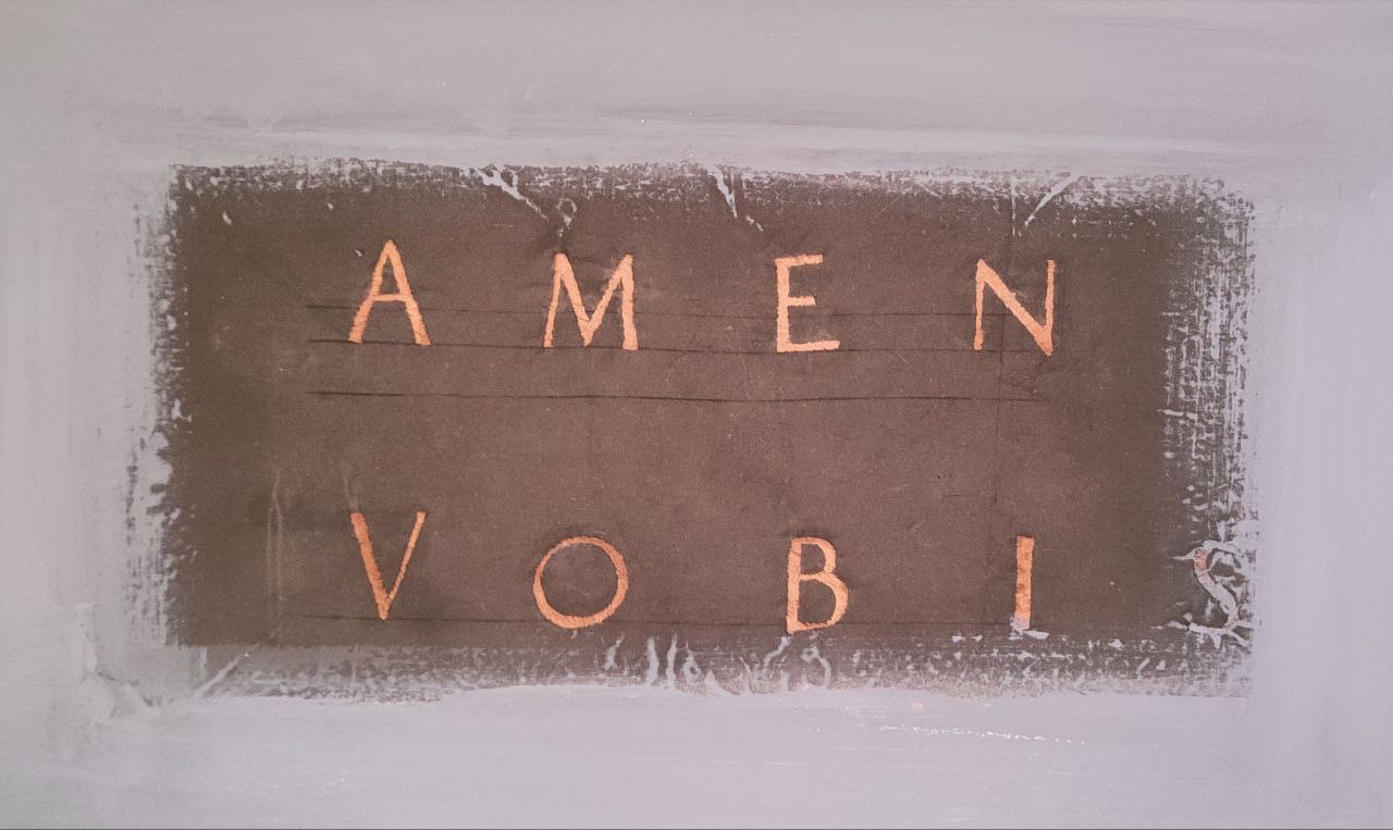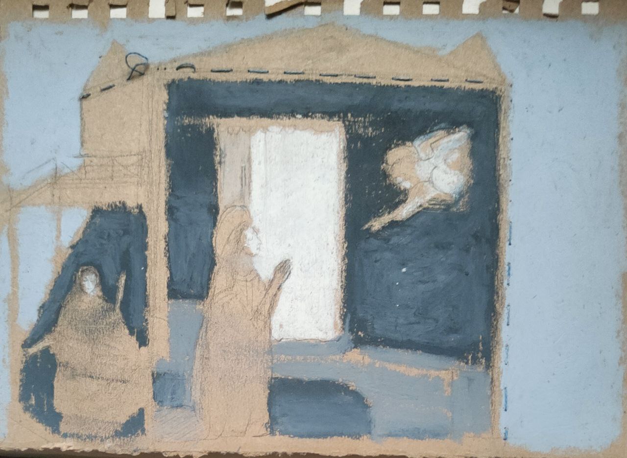 Обратная сторона этой работы с памятью (или с тенями памяти) — в коллажах, вышивках и «малой графике». Внятный ассоциативный ряд — история искусства, чьи экспонаты в каком-то смысле давно пребывают не вполне в статусе вещей: они «по закону» принадлежит вечности и, собственно, являются ею. Но их фрагменты или даже просто имена авторов могут сделаться личными «секретиками» (эта детская игра тут тоже вспоминается) — посредством их перевода в иной регистр и на иной язык. В визуальных воспоминаниях о картинах Пьеро делла Франческа, Рогира ван дер Вейдена или Джованни Беллини исходная живопись словно бы растворяется — то в откровенном «истаивании» и развеществлении былой фигуративности, то в пустотах изобразительной ткани, прочитываемых как утраты связной памяти или ее сознательное «запечатывание», то в палимпсестном напластовании фактур, где почти нечитаемые знаки письма вторгаются в изображение. Здесь присутствует сложно рефлексируемое переживание времени – и времени в разрыве «вечное-сиюминутное» (когда, например, разноязыкие газетные тексты включены в «омаж»), и времени, напротив, стремящегося стать единым в самой длительности вышивания евангельских текстов.