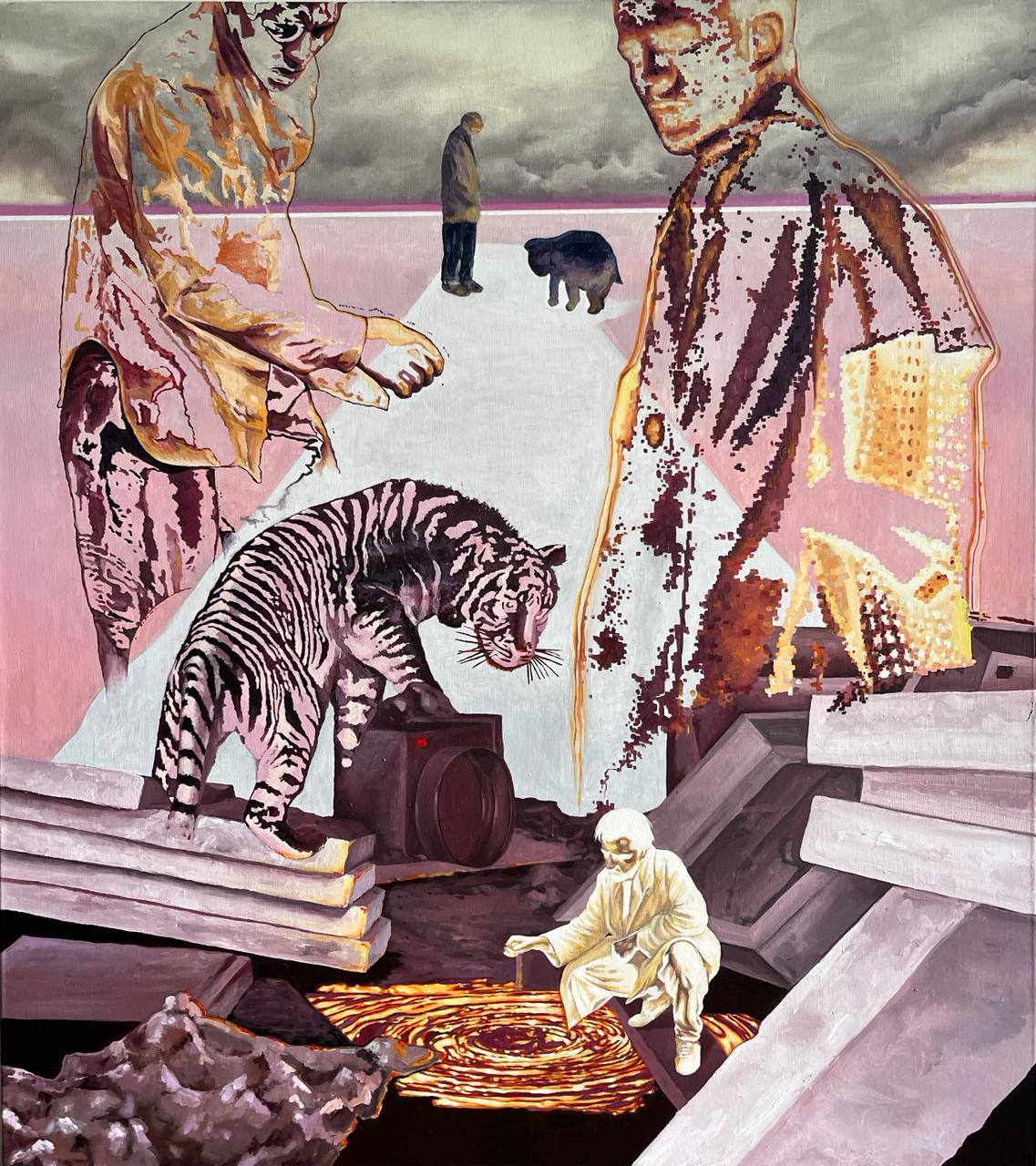 В тандеме с Вероникой на выставке впервые представляет свою живопись Егор Корешков, профессиональный актер театра и кино, талант которого потребовал нового творческого пути развития. Егор демонстрирует свою интерпретацию пути, наполненного символами и отсылками к собственному жизненному опыту. Корешков также активно экспериментирует с пространством и смыслами в своих произведениях, создавая особые визуальные эффекты. Он использует прием развеществления, чтобы разрушить привычные границы и стереотипы восприятия искусства. Сочетая актерское мастерство с художественным видением, Егор Корешков создает работы, которые отличаются глубоким философским содержанием и эстетической выразительностью. Его искусство — это своего рода диалог со зрителем, приглашение к размышлению и эмоциональному переживанию.
