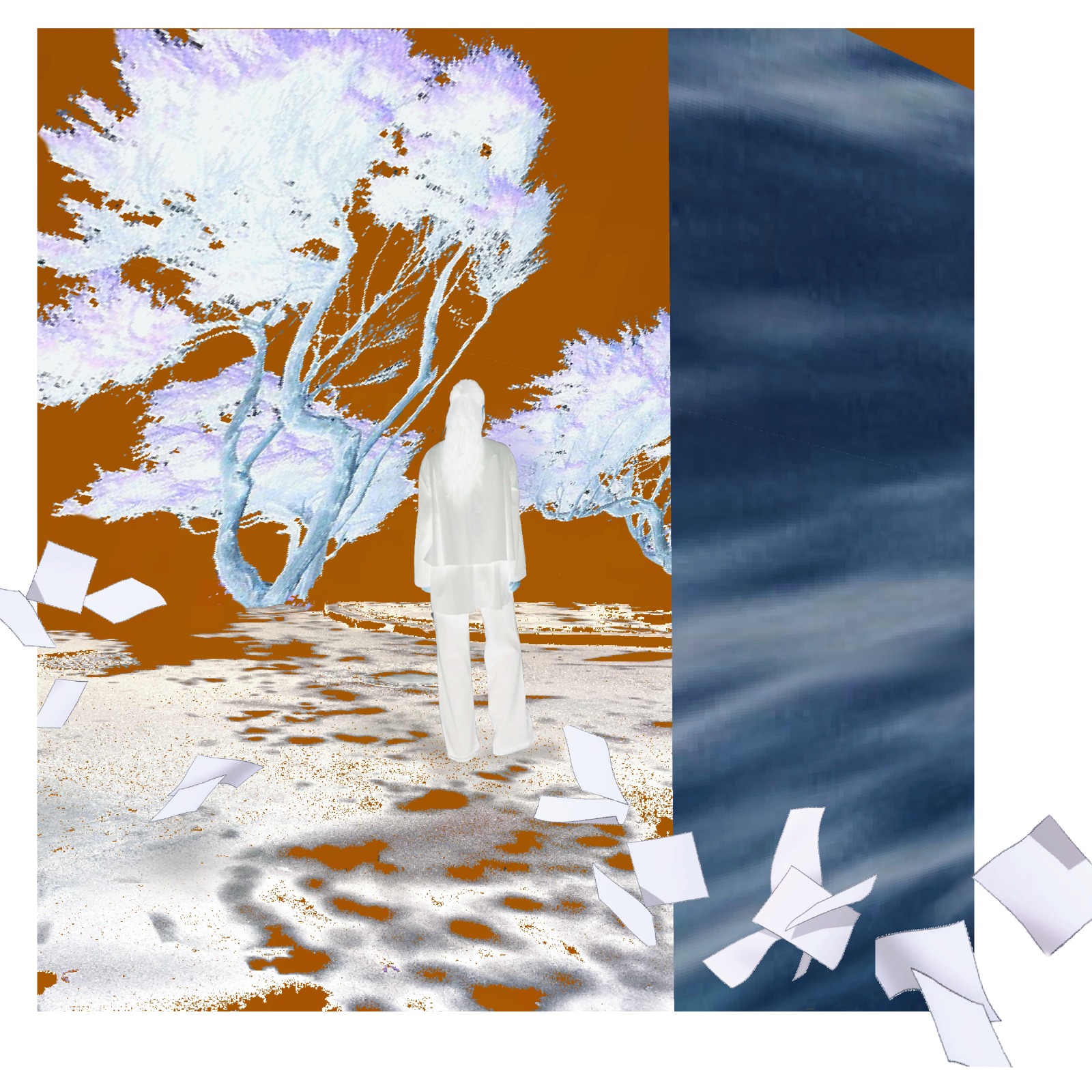 Вероника продолжает серию работ, построенных на моделировании изометрической среды, сознательно нарушая канонические законы композиции и на этот раз подвергая деконструкции не только Пространство, но и Время, которое здесь замедлилось и почти остановилось. Интуитивной живописи Вероники Козачёнок присущи черты психологизма. Зритель переживает трансформацию и погружается в созданный художницей сюрреалистический мир в точке пространственно-временного разлома. Благодаря авторской технике инверсии цветов и форм и создания эффекта иллюзии с помощью фотографического приема негатива, скрытое в картинах можно увидеть только с помощью камеры мобильного телефона.