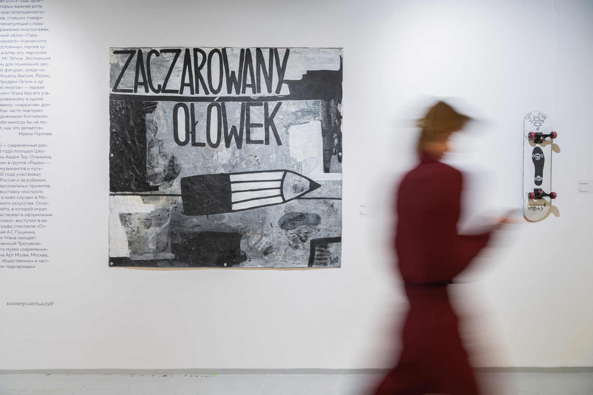 Помимо живописи и графики, на выставке демонстрируются объекты, среди которых следует особенно отметить подборку стульев и скейт 2010-х годов. Большую часть экспонатов составляют работы с узнаваемыми ироничными и порой абсурдными фразами на русском и иностранных языках. Говоря от текстоцентричности своих произведений, сам Чтак в шутку называл себя филологом. Войдет в экспозицию и знаковая работа «В моем случае — ни в коем случае», давшая название одноименной выставке 2016 года в ММОМА. Ее дополнит ряд масштабных произведений из того же проекта.
