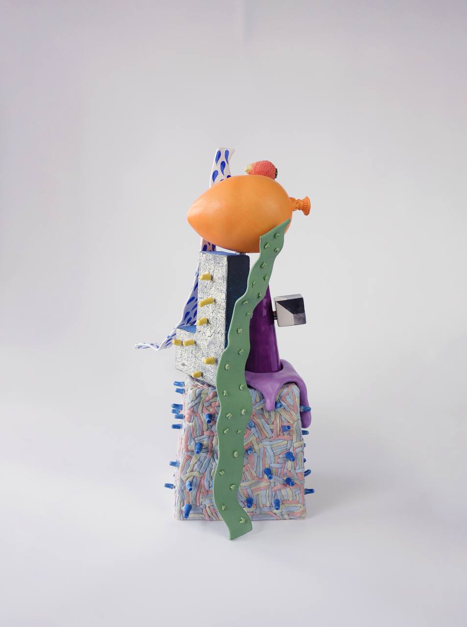 Ольга Симонова работает с керамикой и создает модульные объекты. Отдельные элементы скрепляются между собой магнитами, что дает зрителю возможность стать соавтором и создать свою версию произведения, перемещая детали в новые места. Так художница отражает в своем искусстве идею пересборки рутины в игре.