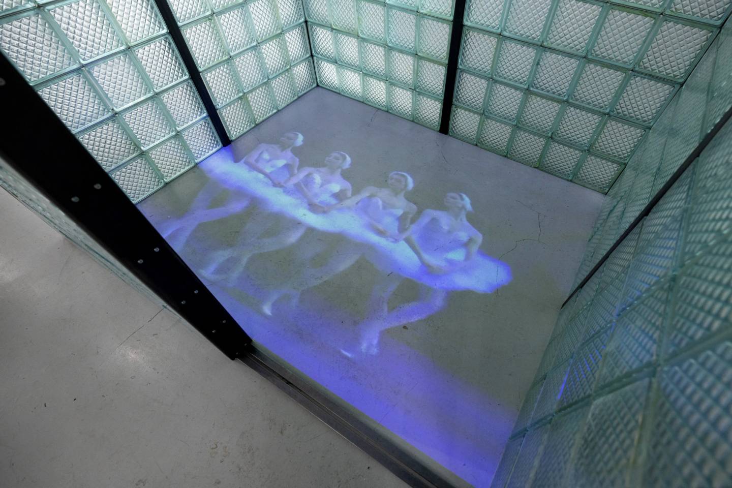Анна Бёрч превращает культурный символ — «Лебединое озеро» — в ритуал труда. В её инсталляции танец лишается музыки и романтики, становясь чистой механикой: синхронным, дисциплинированным, бесконечным. Стеклоблоки, символы советского утопического строительства, создают пространство, где прозрачность обманчива, а коллективное движение заменяет индивидуальный голос. Работа раскрывает, как национальные и культурные коды формируют труд — и как даже красота может быть подчинена логике производительности.
